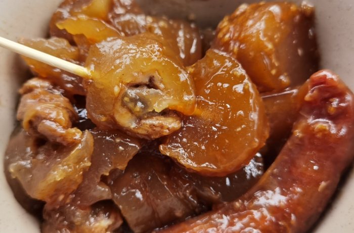 - 欸?粉腸店?你沒看錯!但這家“康家”可不是隻有粉腸厲害!他們家的手工肉乾和香腸,絕對是隱藏版伴手禮!尤其是那個蜜汁豬肉乾,厚度夠,咬下去有紮實感但又不會硬,蜜汁的甜鹹比例抓得超好,一口接一口停不下來!香腸也是真材實料,肉汁飽滿。跟其他糕餅甜點比起來,鹹香的肉乾、香腸是很好的平衡點。店面很樸實,就在路邊,但常常看到在地人排隊買。提醒一下,肉乾香腸儲存期限較短,送人要注意時間。