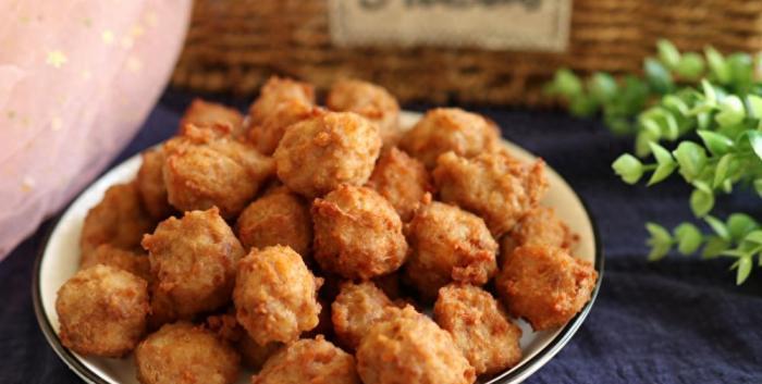 剁肉餡時,儘量保持在同一個方向,這樣可以確保肉餡的勁道十足,剁好的肉茸可以用手捏成小球狀,在油熱時下鍋炸至金黃即可,外焦裡嫩。