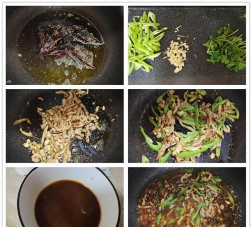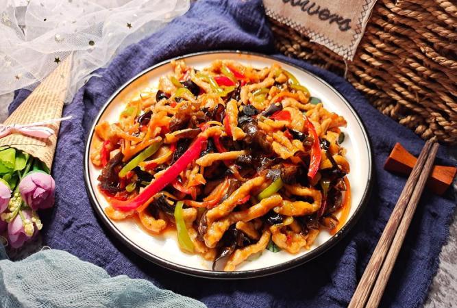 豬肉切成絲,在鍋中翻炒,豬肉的油脂滲出,成為調味的最佳來源。接著加入豆瓣醬,帶來獨特的鹹香味,再加入香蔥、木耳、泡椒等配菜提鮮,色澤豔麗,味道獨特。