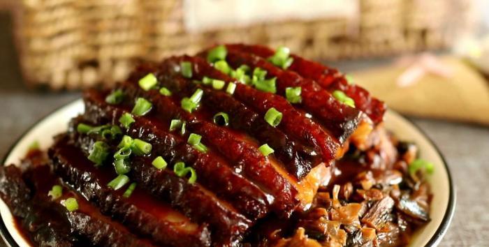 將五花肉切成薄片,用鹽、料酒、蔥姜醃製片刻,放入蒸鍋蒸熟即可,肉質鮮嫩,肥瘦相間。