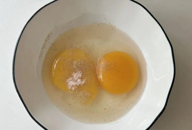 鵝蛋磕入碗中,加入少量的海鹽和白胡椒粉,充分攪拌均勻;鵝蛋真的太漂亮了!